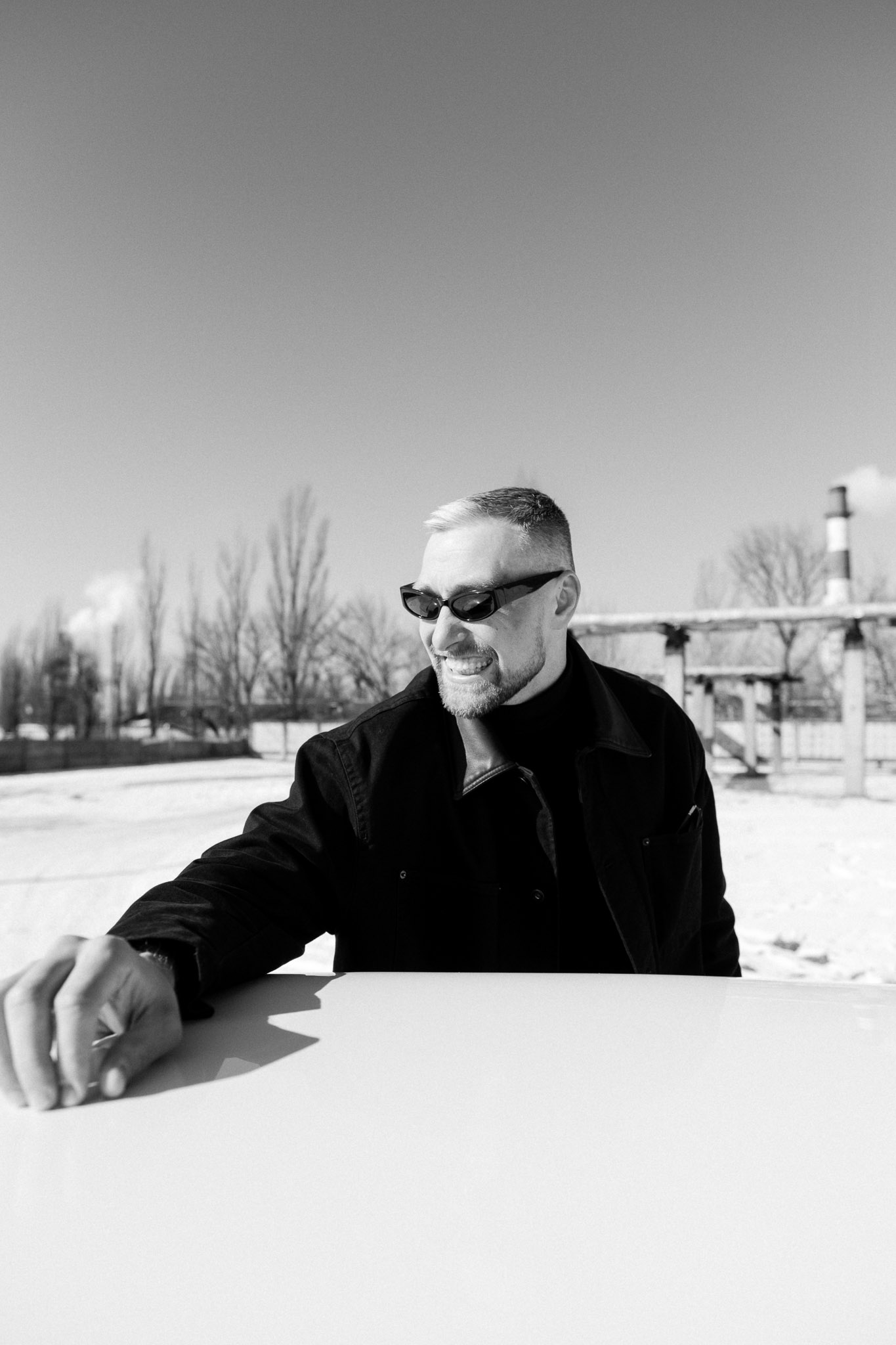 Промислова територія, сніг і відкритий горизонт. Мінімалістичний фон дозволив зосередитися на формі машини та її деталях.