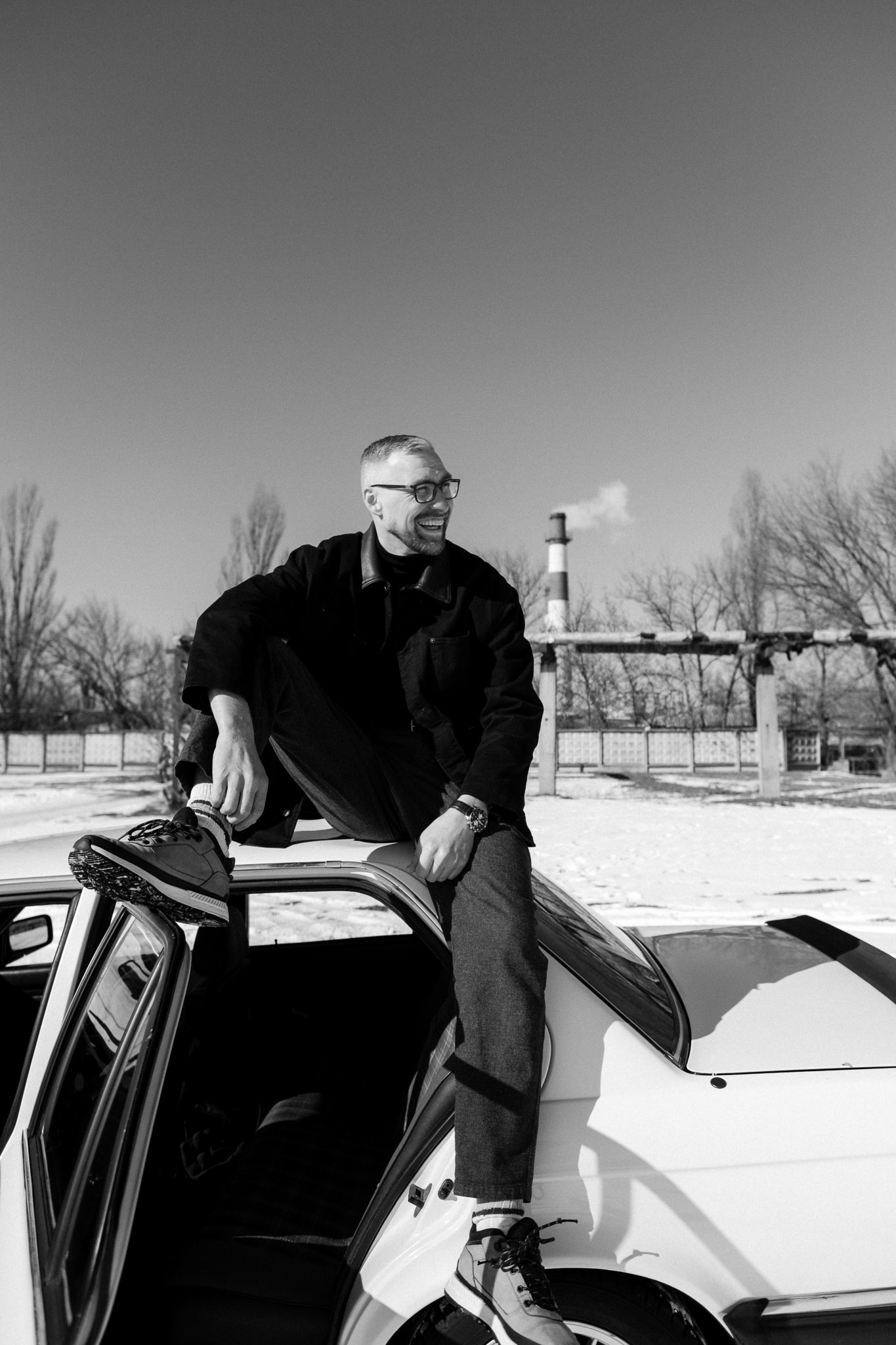 Міська зимова серія з BMW E30 в індустріальних локаціях.