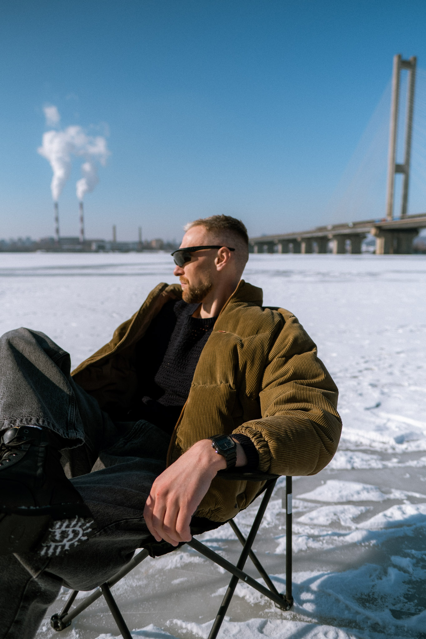 Під мостом композиція стала більш щільною. З’явились глибші тіні і контраст, але настрій залишився спокійним. Серія тримається на геометрії, світлі і присутності.