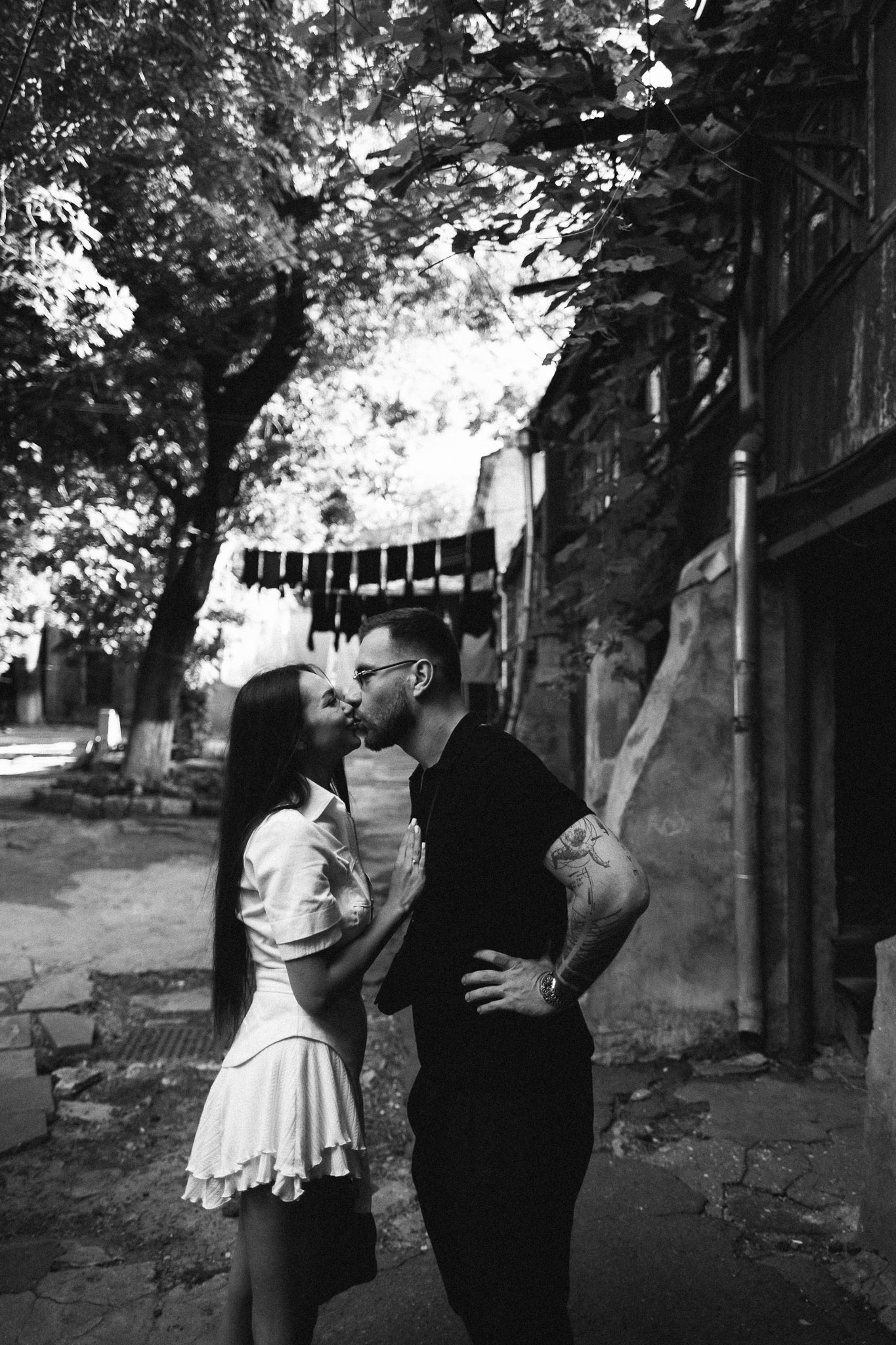 Міська частина зйомки — центр і внутрішні дворики. Стріт-формат, природна взаємодія, жива архітектура як фон.