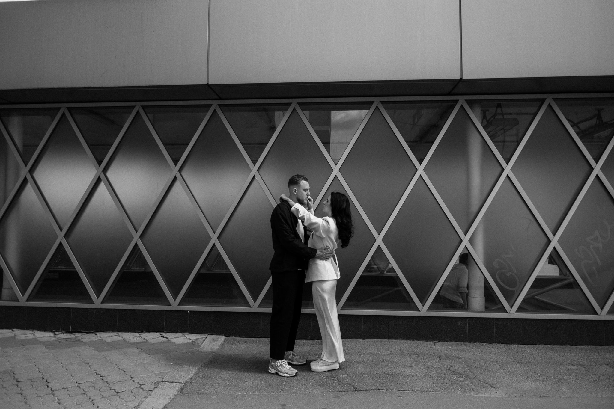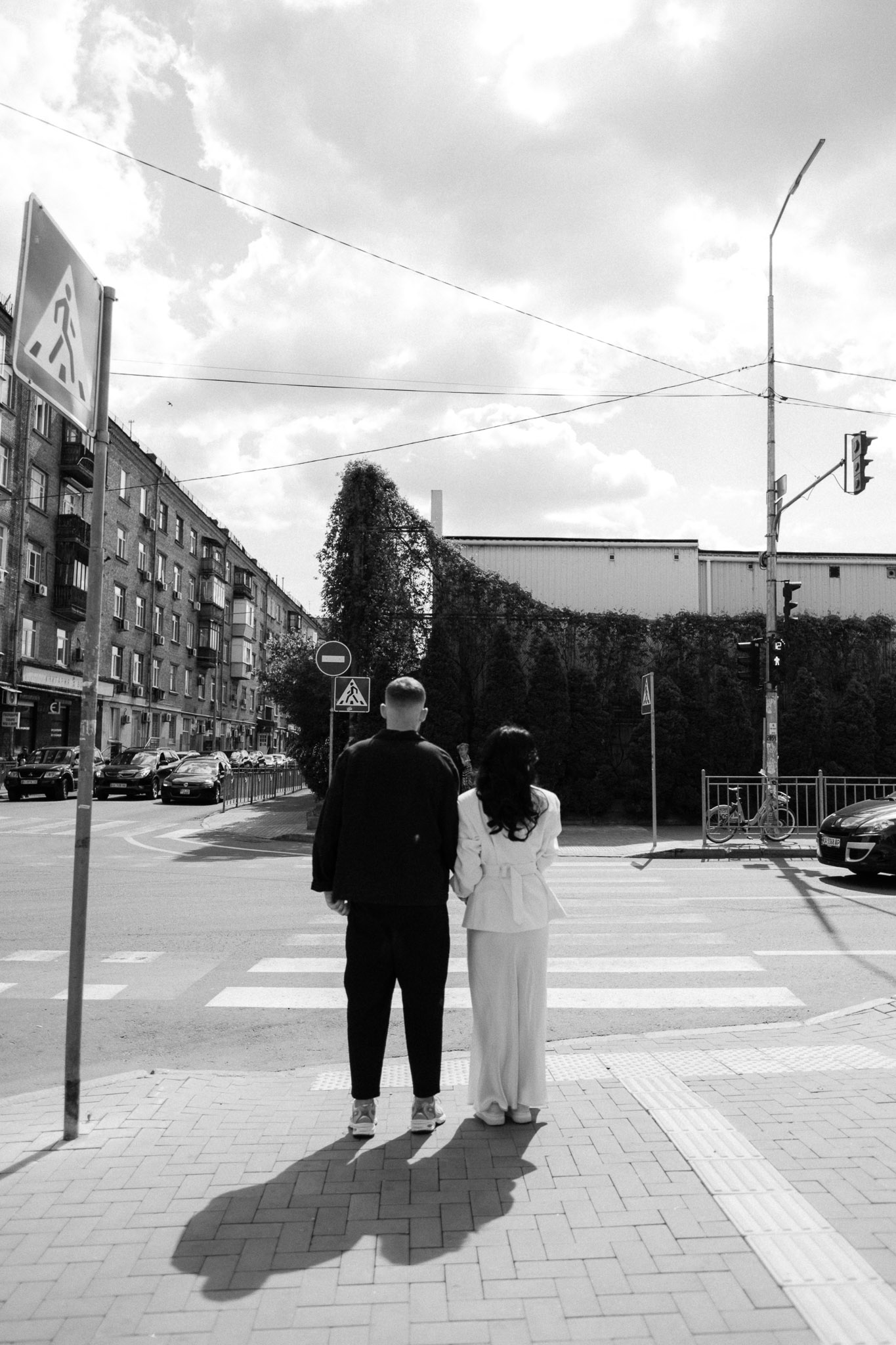Після офіційної частини вони хотіли прожити цей день у місті. Прогулялись знайомими вулицями Подолу, зняли серію в русі — без напруження, по-справжньому.